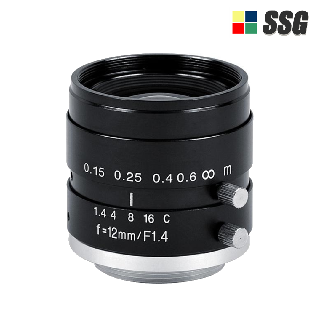 This 1.5MP 2/3" Machine Vision FA Lens, Focal length 12.3mm, Iris range F1.4-C, Focusing Range 0.15m- ∞.