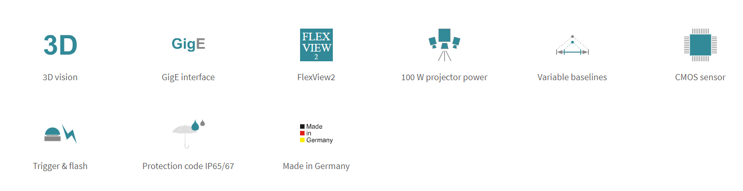 GigE, FlexView2, for stationary objects and working distances up to 5 meter or volume up to 8 m³